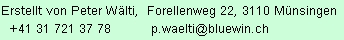 Mein Name ist Peter Wälti (1943). Meines ersten Vorvaters Heimatort ist Rüderswil im Emmental. Am Brienzersee, im Dorf Niederried bei Interlaken, bin ich aufgewachsen. Dort, im Estrich des Hauses meiner Jugendzeit, stand, in Form einer Kartonschachtel mit alten Kaufverträgen und den Liebesbriefen meiner Grossmutter, auch die Wiege meines Hobbys, der Familienforschung.
